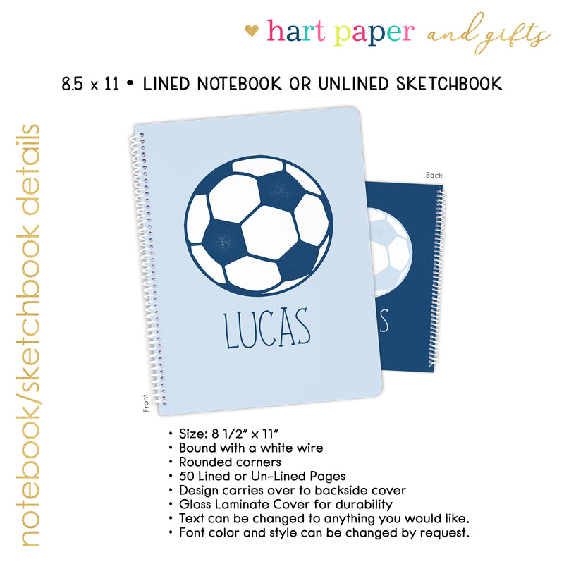 Blue Soccer Ball Personalized Custom Notebook or Sketchbook • School Office Supplies