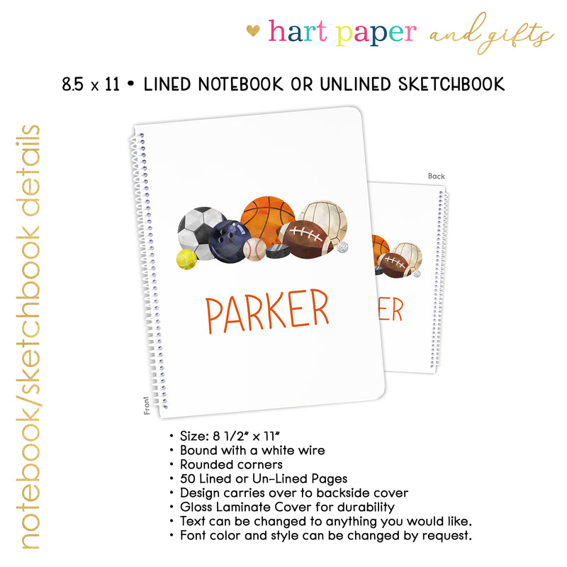 Sports Balls Personalized Custom Notebook or Sketchbook • School Office Supplies