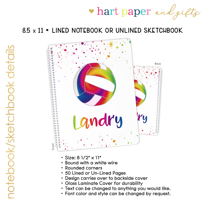 Rainbow Volleyball Personalized Custom Notebook or Sketchbook • School Office Supplies