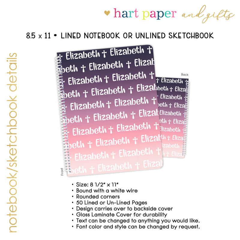Repeat Name Cross Personalized Custom Notebook or Sketchbook • School Office Supplies