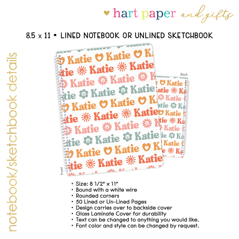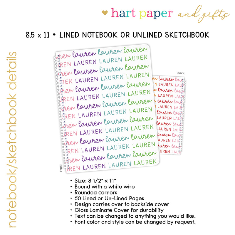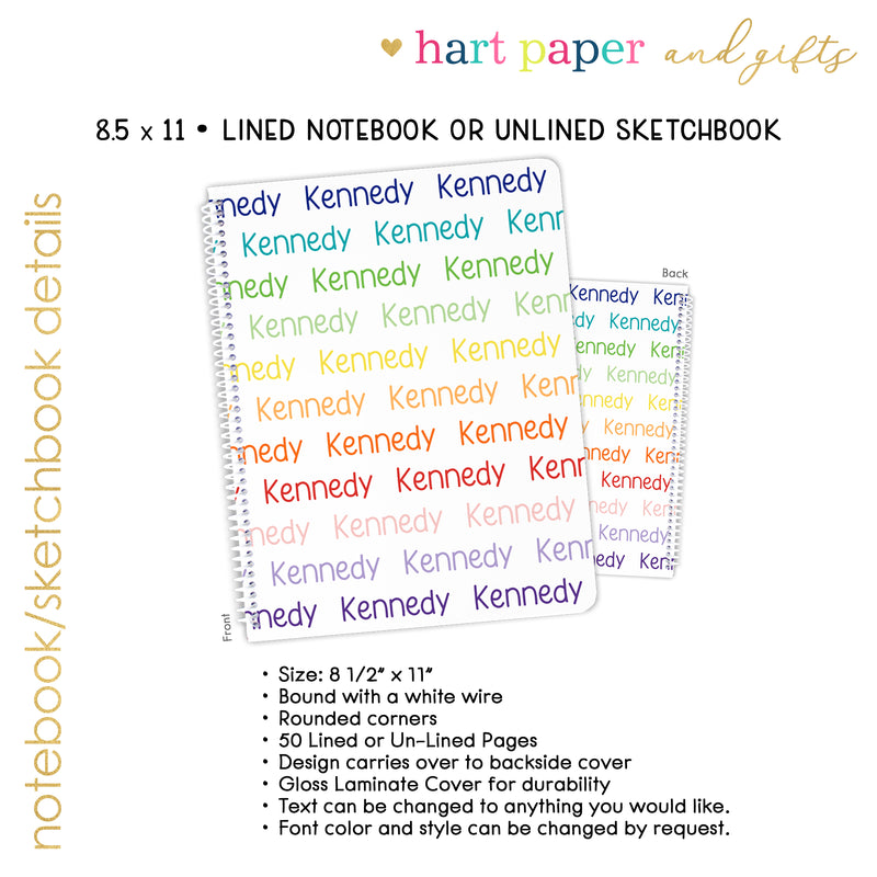 ANY COLOR Repeat Name Personalized Custom Notebook or Sketchbook • School Office Supplies