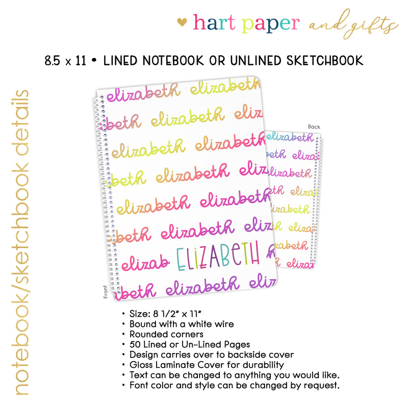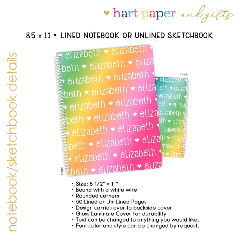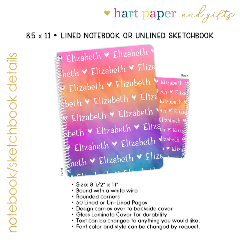 Rainbow Name Personalized Custom Notebook or Sketchbook • School Office Supplies