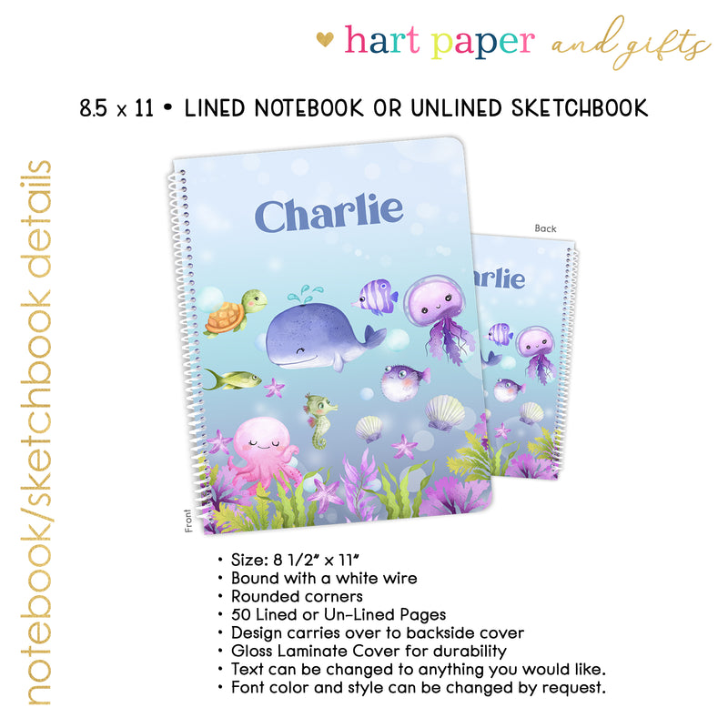 Ocean Fish Personalized Custom Notebook or Sketchbook • School Office Supplies