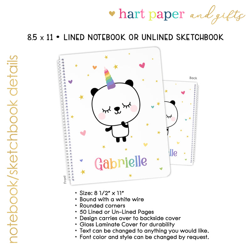 Rainbow Panda Bear Personalized Custom Notebook or Sketchbook • School Office Supplies