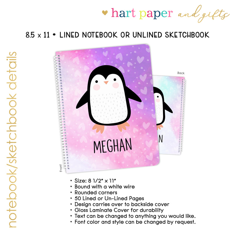 Penguin Animals Personalized Custom Notebook or Sketchbook • School Office Supplies