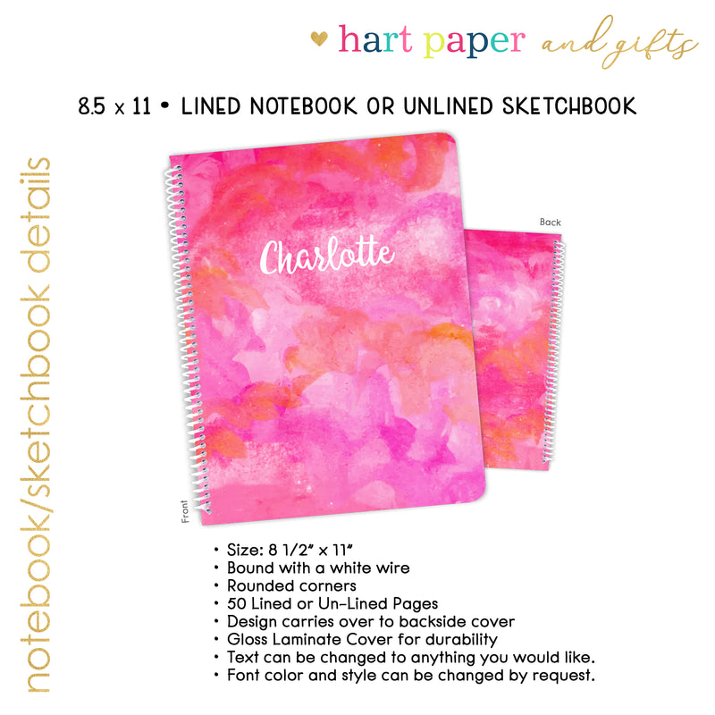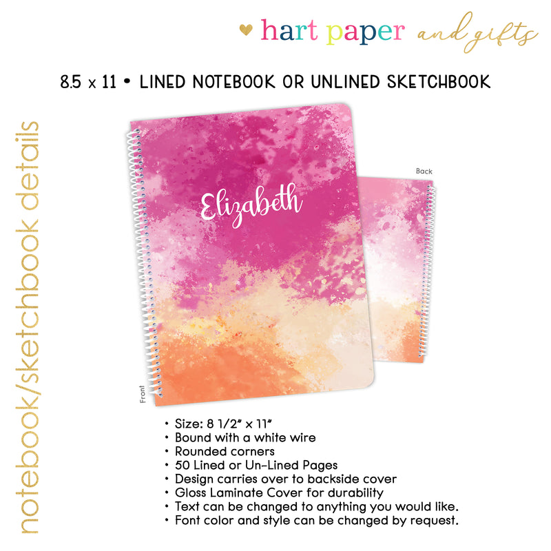 Orange Pink Personalized Custom Notebook or Sketchbook • School Office Supplies
