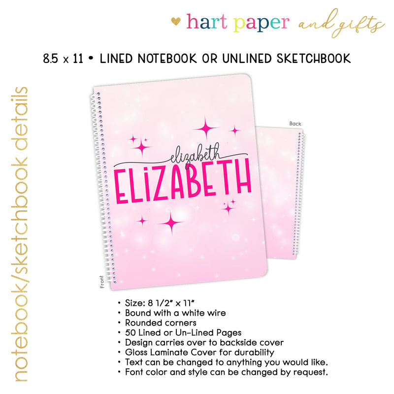 Pink Sparkle Personalized Custom Notebook or Sketchbook • School Office Supplies