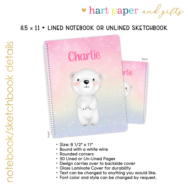 Polar Bear Animals Personalized Custom Notebook or Sketchbook • School Office Supplies