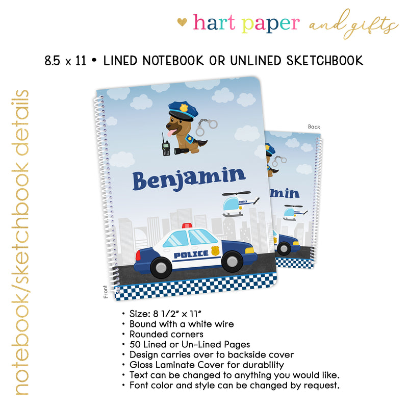 Police Personalized Custom Notebook or Sketchbook • School Office Supplies