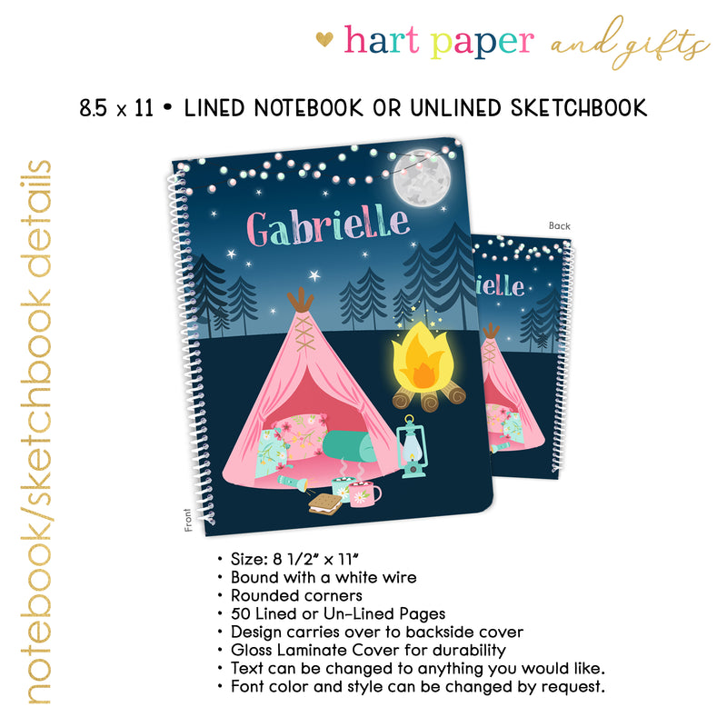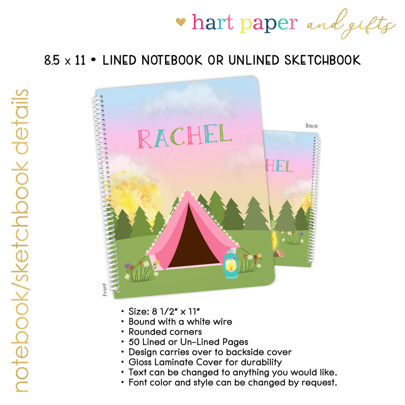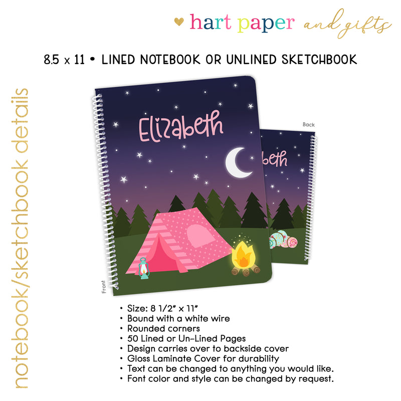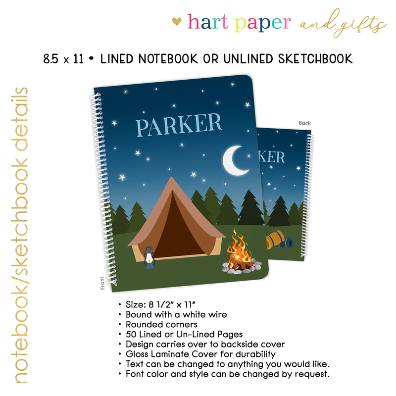 Camping Summer Camp Personalized Custom Notebook or Sketchbook • School Office Supplies