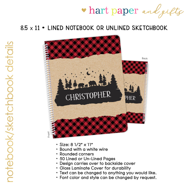 Buffalo Check Bears Personalized Custom Notebook or Sketchbook • School Office Supplies