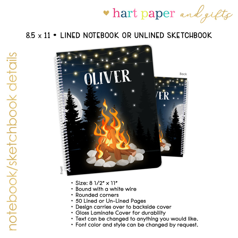 Bonfire Camping Personalized Custom Notebook or Sketchbook • School Office Supplies