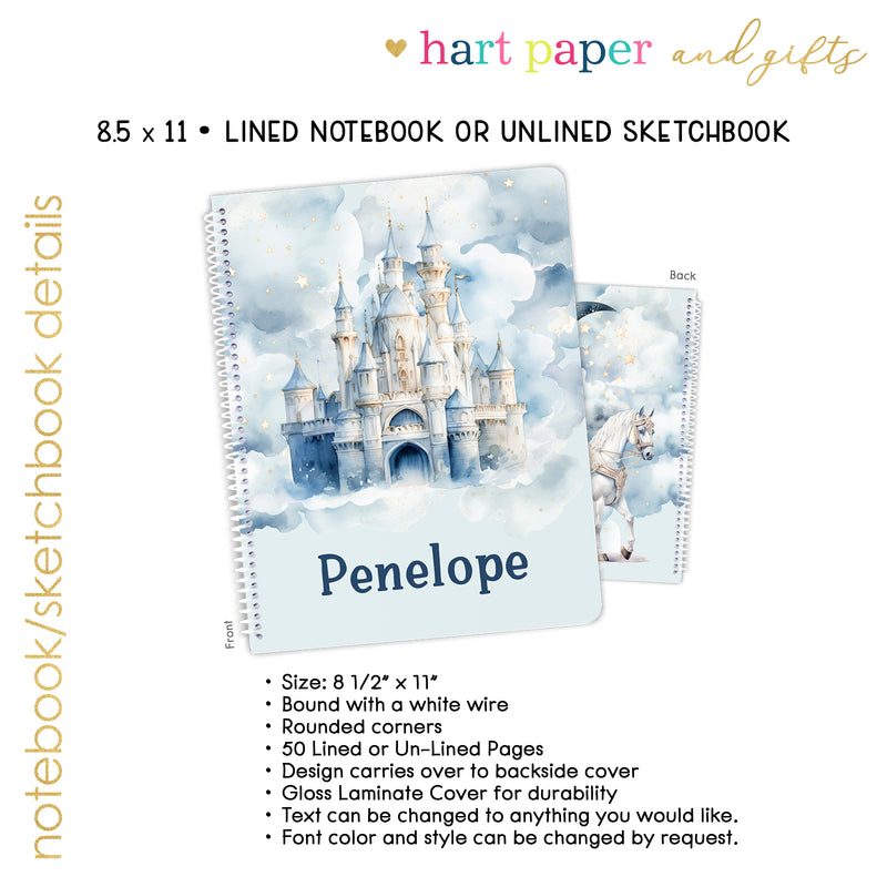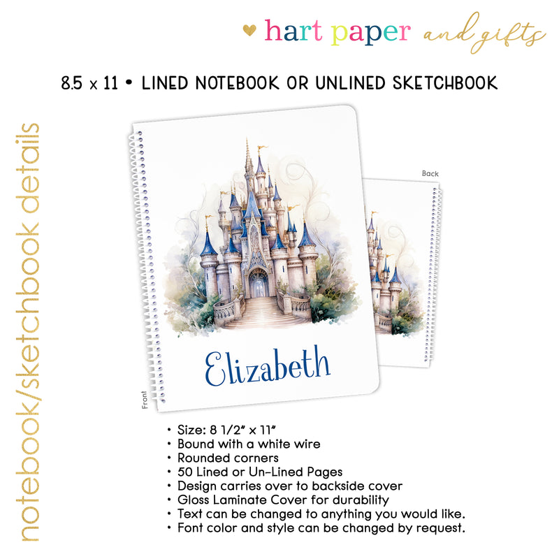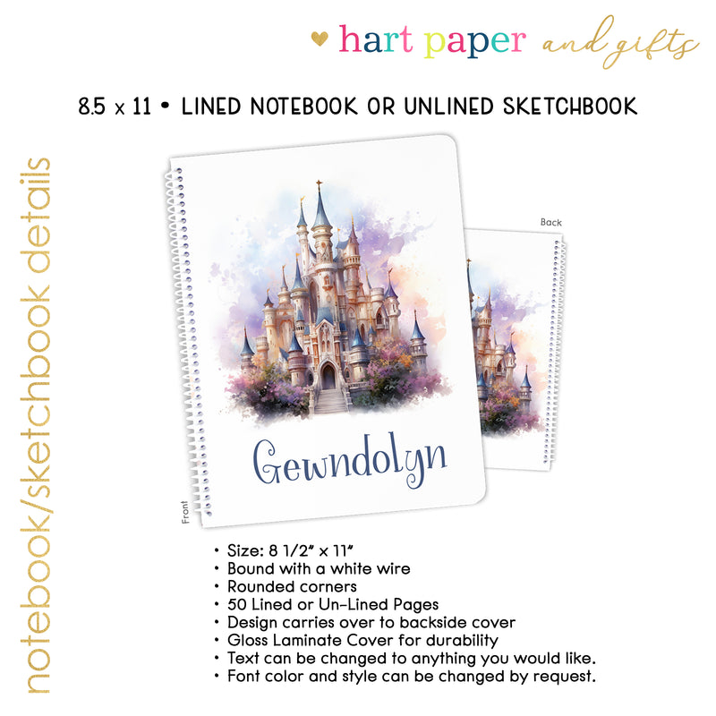 Castle Personalized Custom Notebook or Sketchbook • School Office Supplies