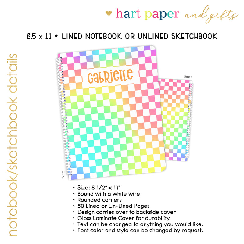 Rainbow Checks Personalized Custom Notebook or Sketchbook • School Office Supplies