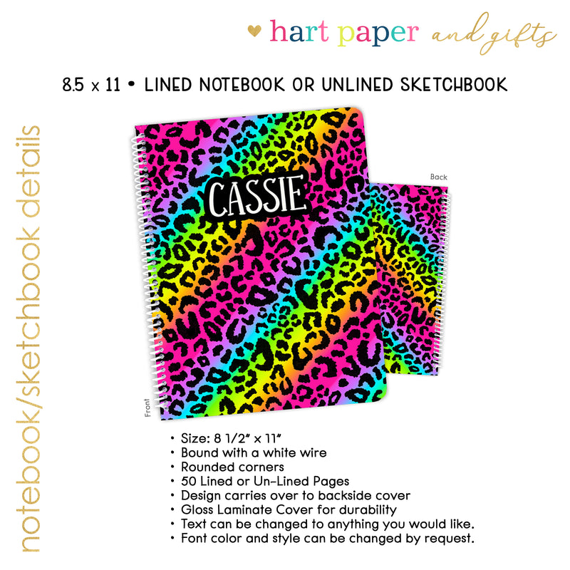 Cheetah Cat Rainbow Personalized Custom Notebook or Sketchbook • School Office Supplies
