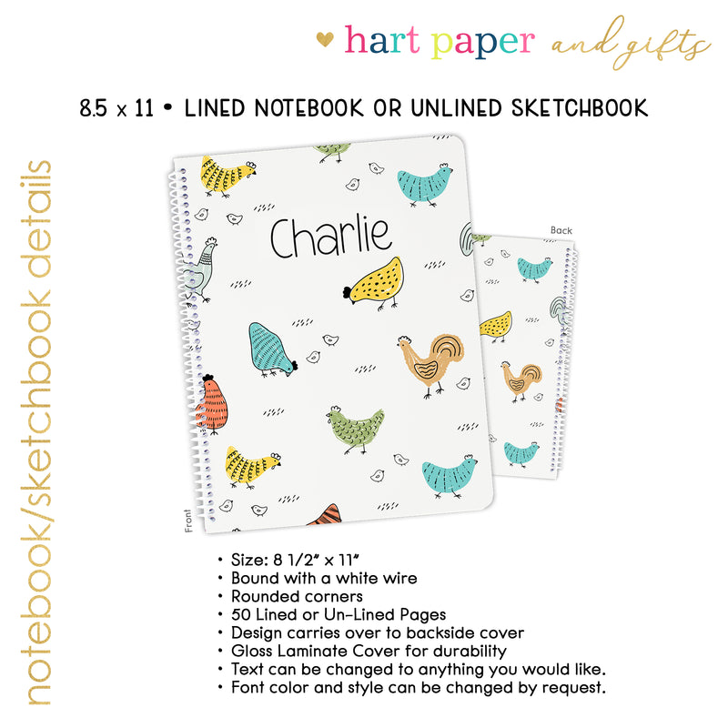 Chickens Personalized Custom Notebook or Sketchbook • School Office Supplies