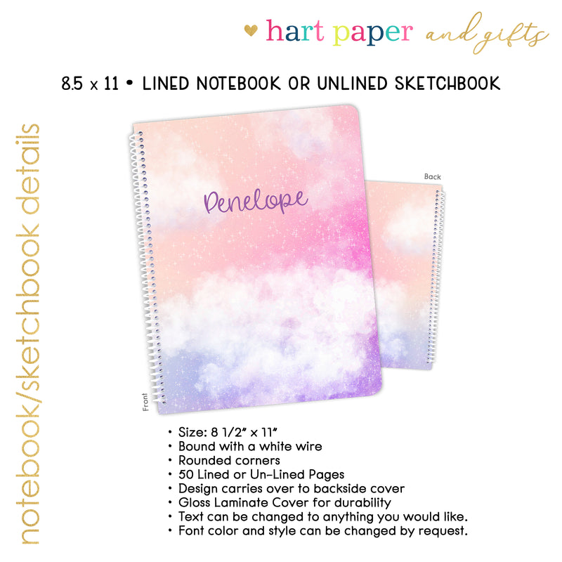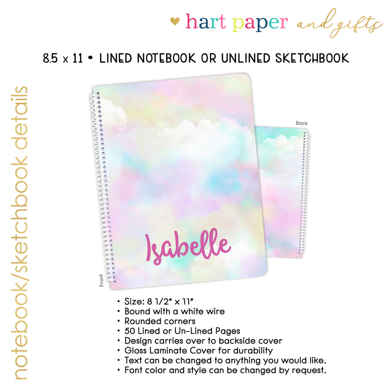 Rainbow Clouds Personalized Custom Notebook or Sketchbook • School Office Supplies