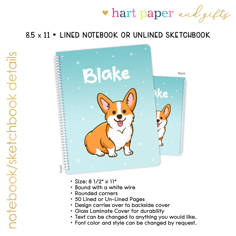 Corgi Personalized Custom Notebook or Sketchbook • School Office Supplies