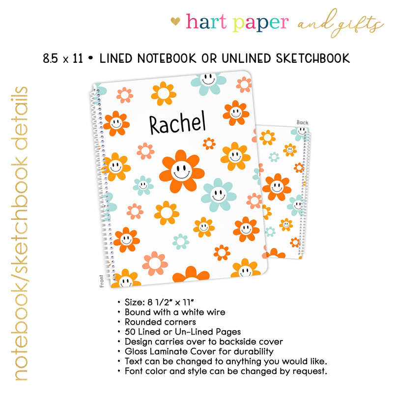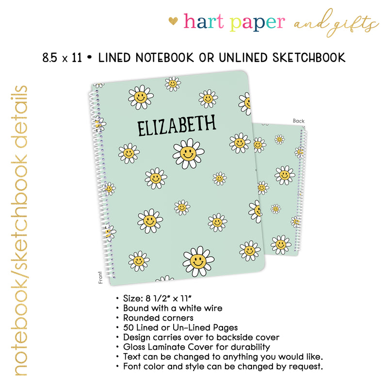 Happy Daisy Flowers Personalized Custom Notebook or Sketchbook • School Office Supplies