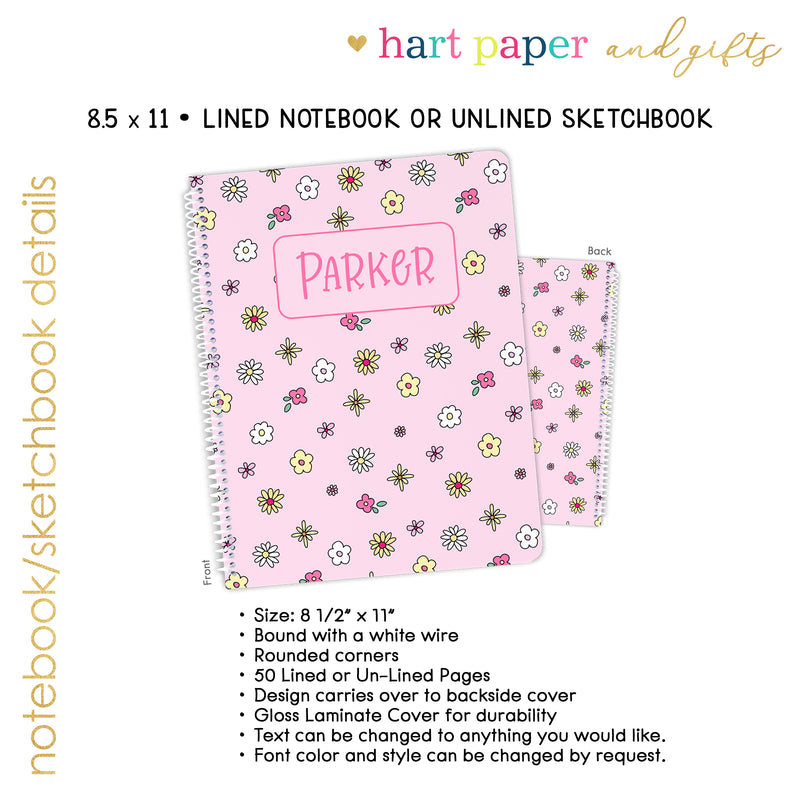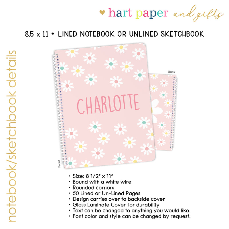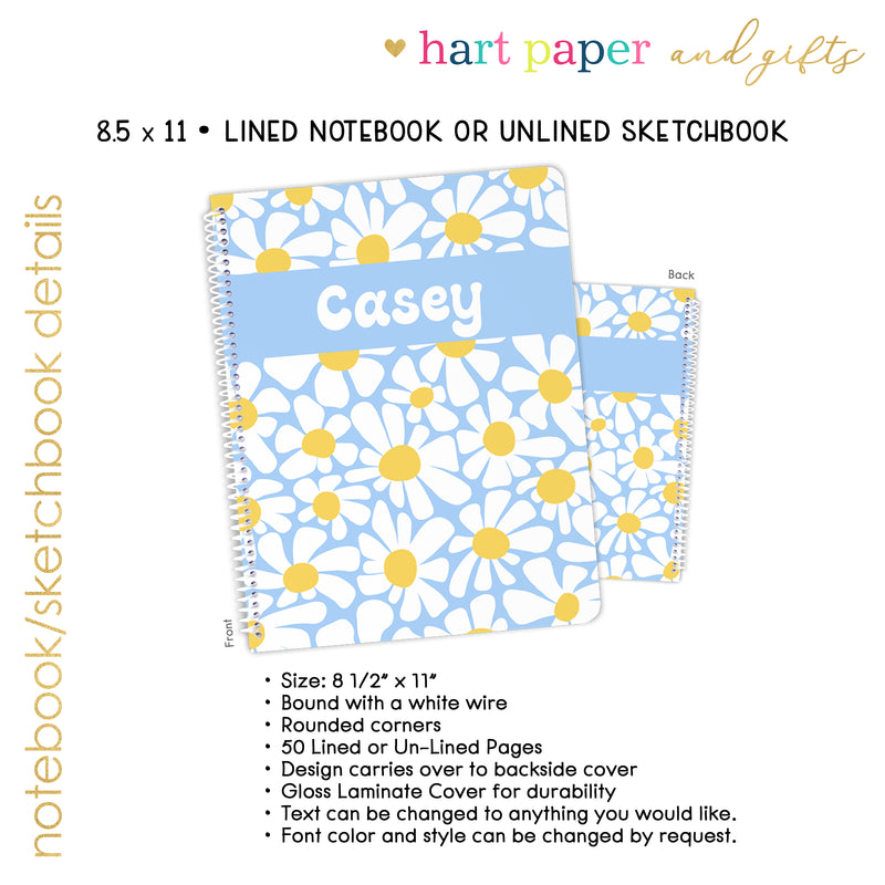 Daisy Flowers Personalized Custom Notebook or Sketchbook • School Office Supplies