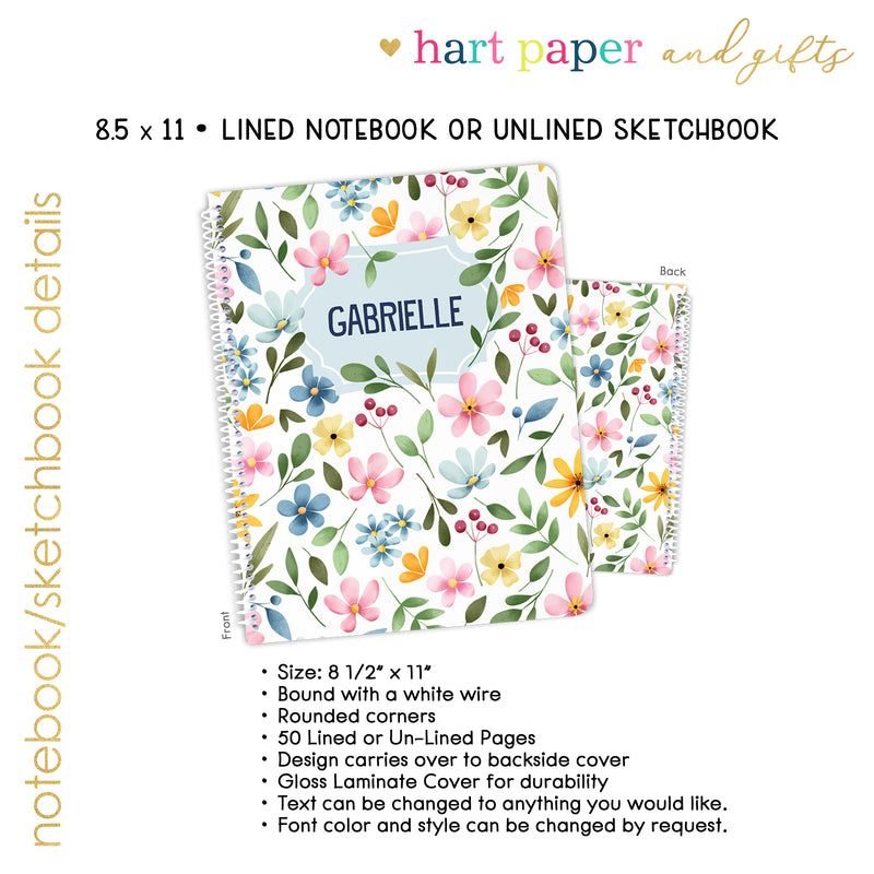 Rainbow Flowers Personalized Custom Notebook or Sketchbook • School Office Supplies