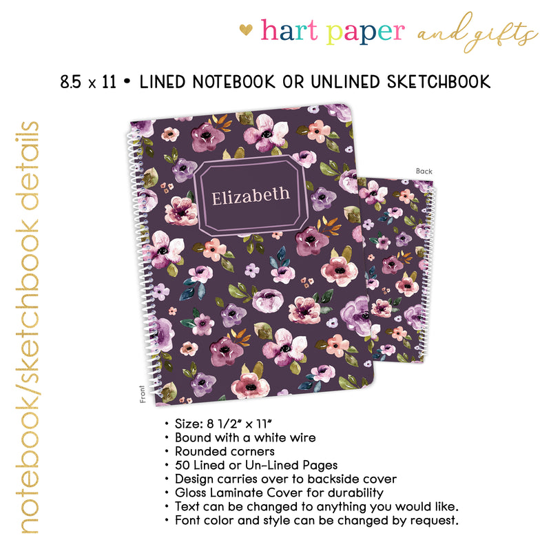 Purple Flowers Personalized Custom Notebook or Sketchbook • School Office Supplies