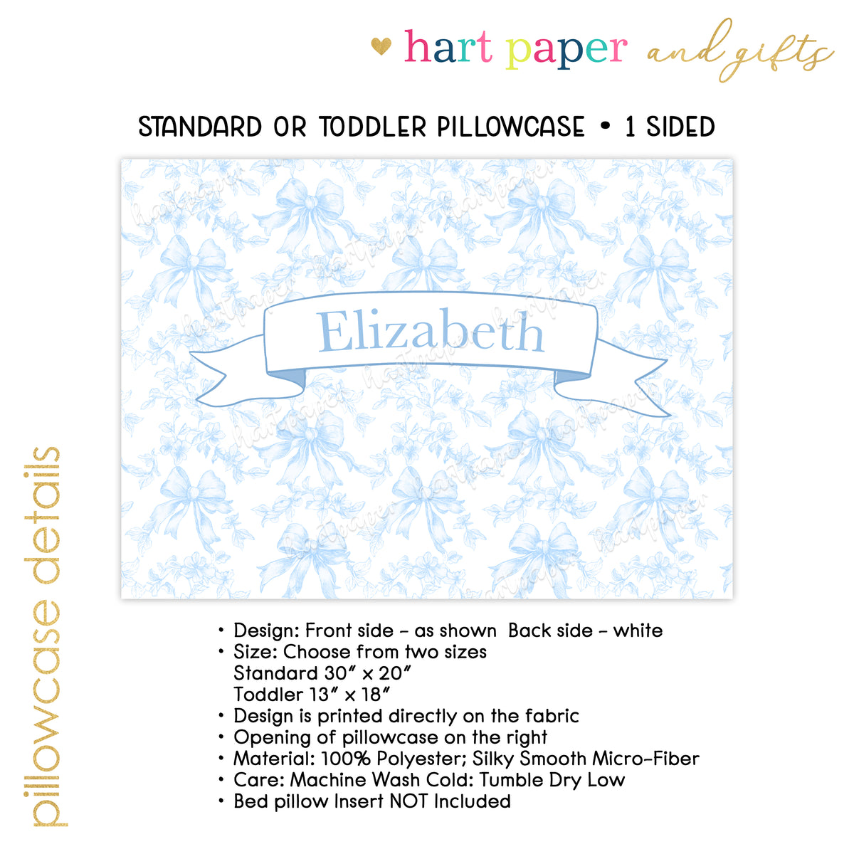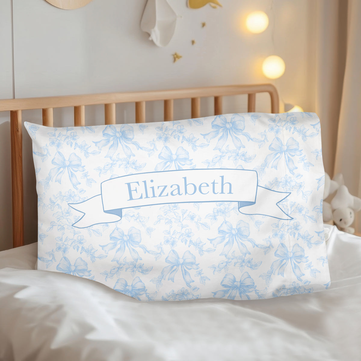 Blue Toile Coquette Bow Chinoiserie Flowers Personalized Custom Pillowcase • Standard or Toddler Size