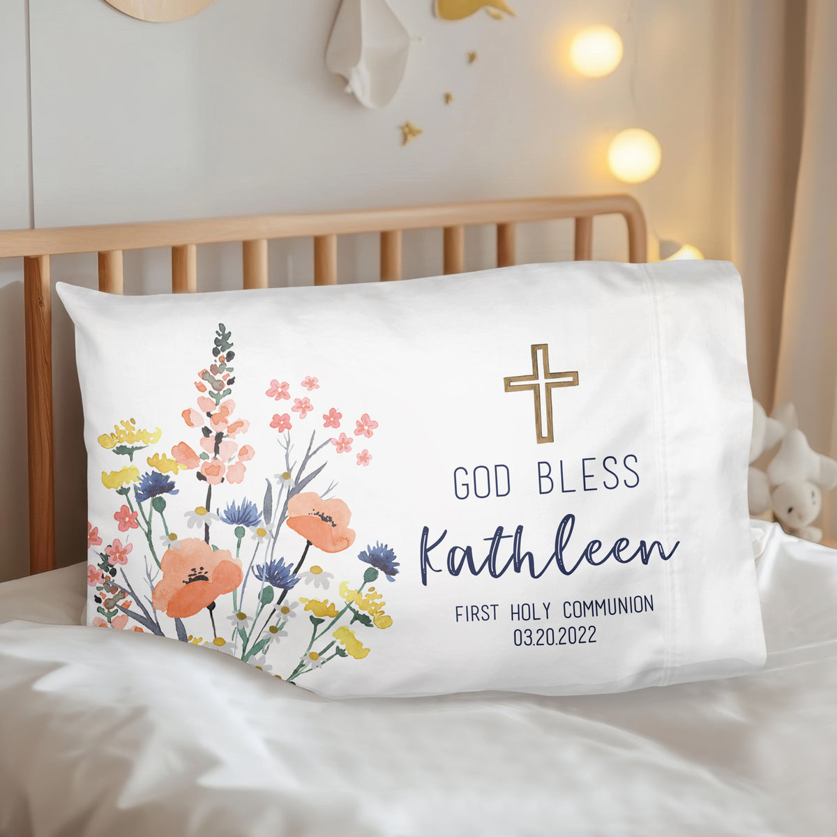 Cross Flowers Personalized Custom Pillowcase • Standard or Toddler Size