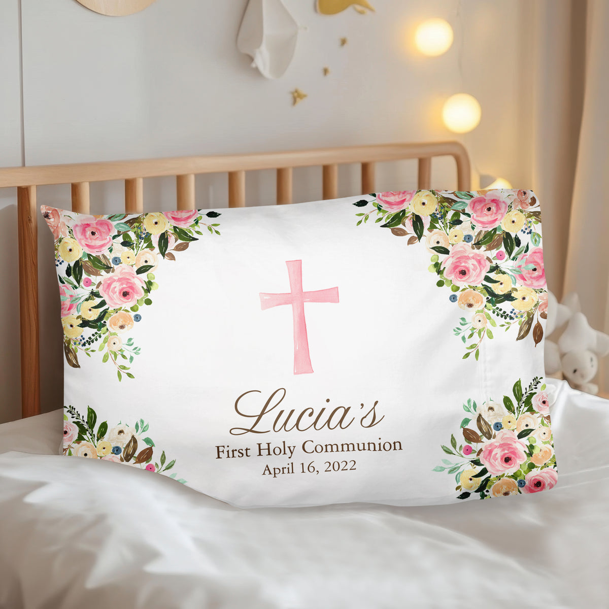 Cross Flowers Personalized Custom Pillowcase • Standard or Toddler Size