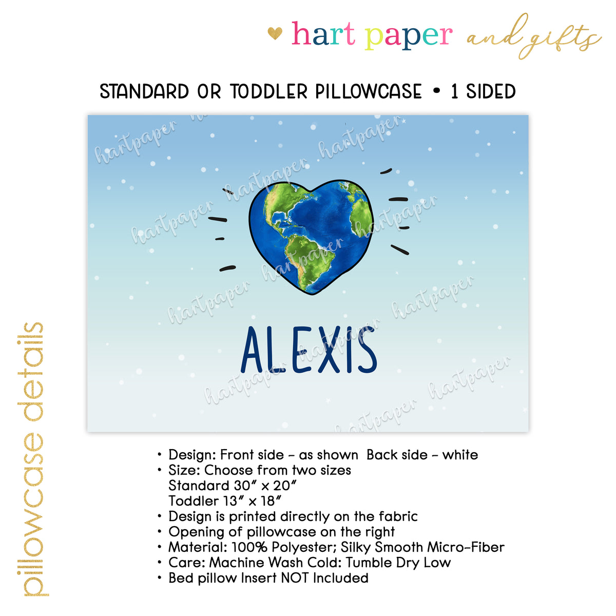 Earth Heart Personalized Custom Pillowcase • Standard or Toddler Size