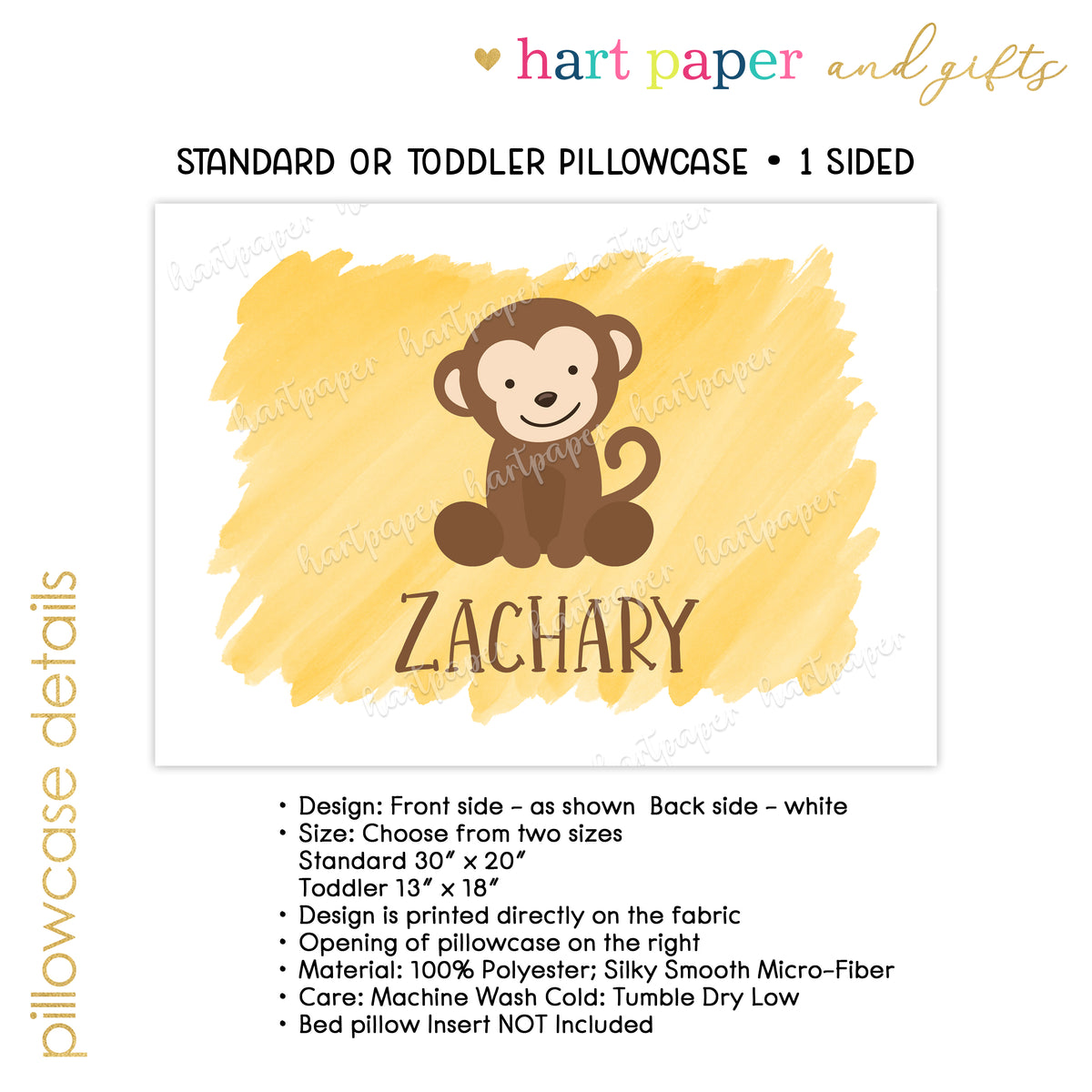 Monkey Personalized Custom Pillowcase • Standard or Toddler Size
