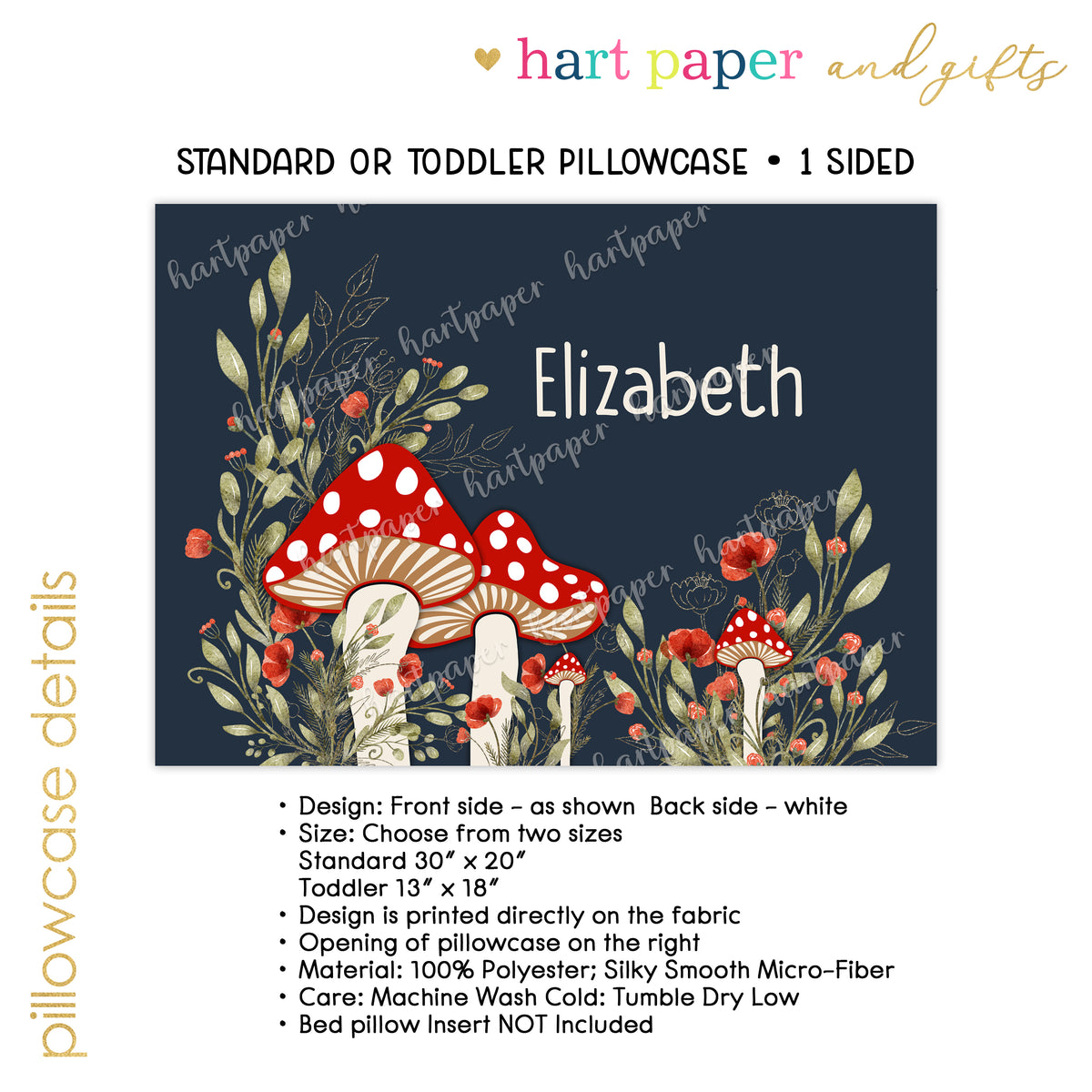 Mushroom Personalized Custom Pillowcase • Standard or Toddler Size