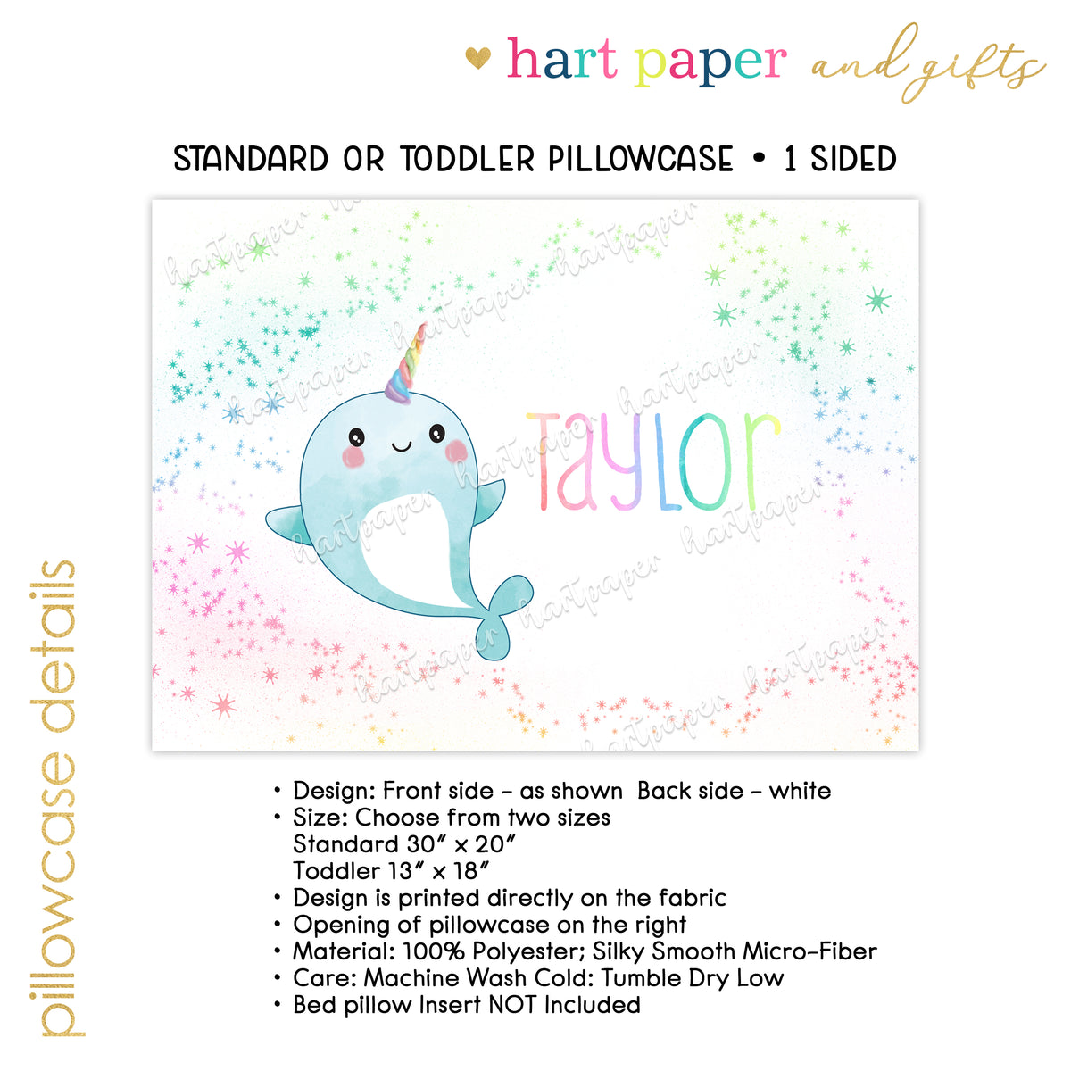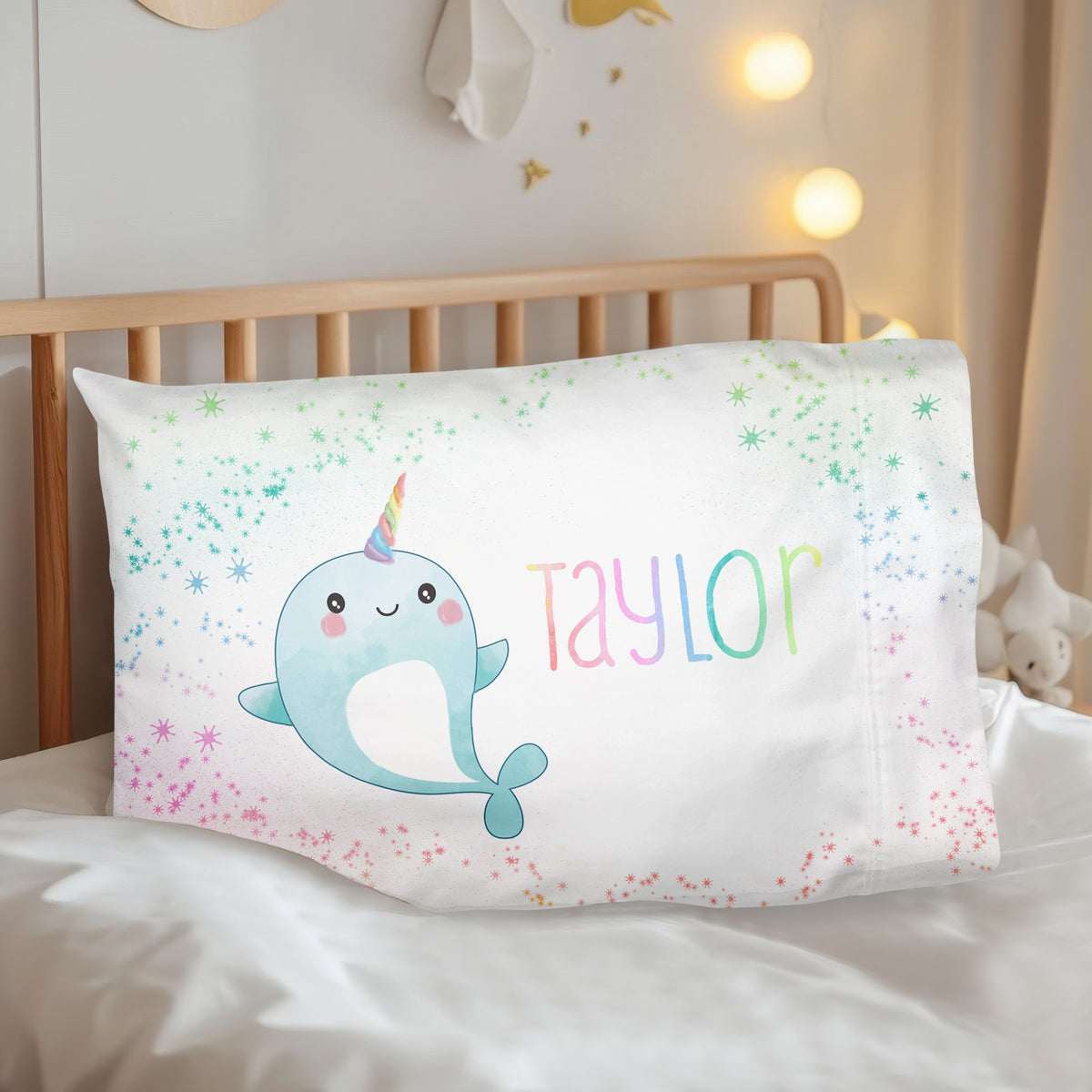 Narwhal Rainbow Personalized Custom Pillowcase • Standard or Toddler Size