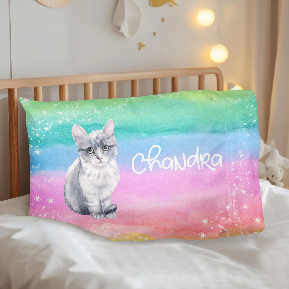 Rainbow Cat Personalized Custom Pillowcase • Standard or Toddler Size