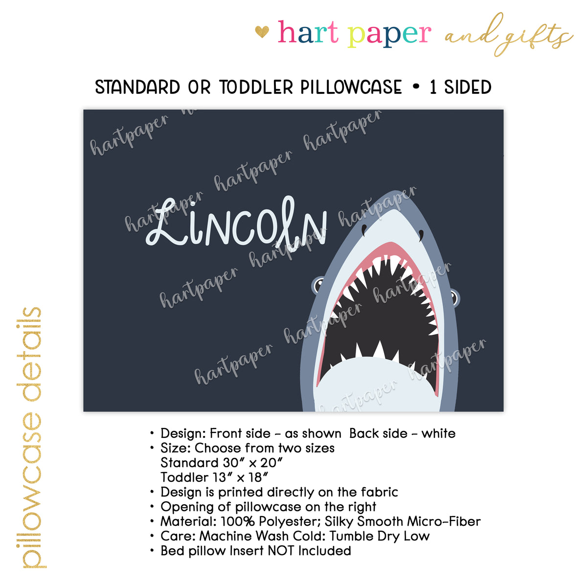 Dimensions: | Choose from two sizes Standard 30″ x 20″ Pillowcase Toddler 13" x 18" Pillowcase |