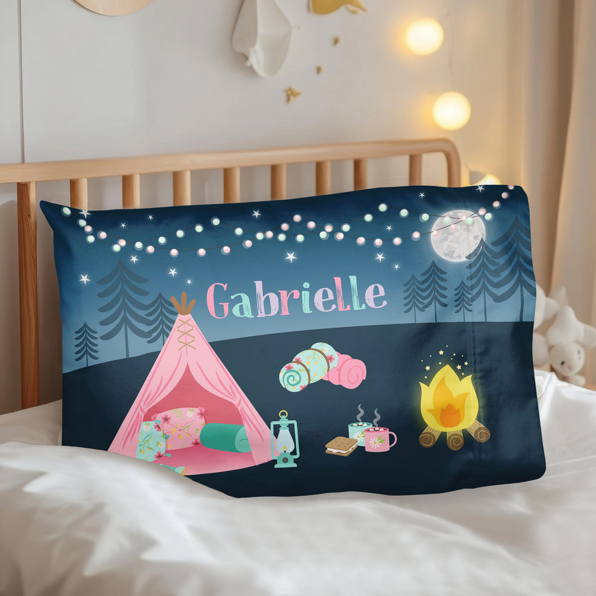 Tent Camp Camping Personalized Custom Pillowcase • Standard or Toddler Size