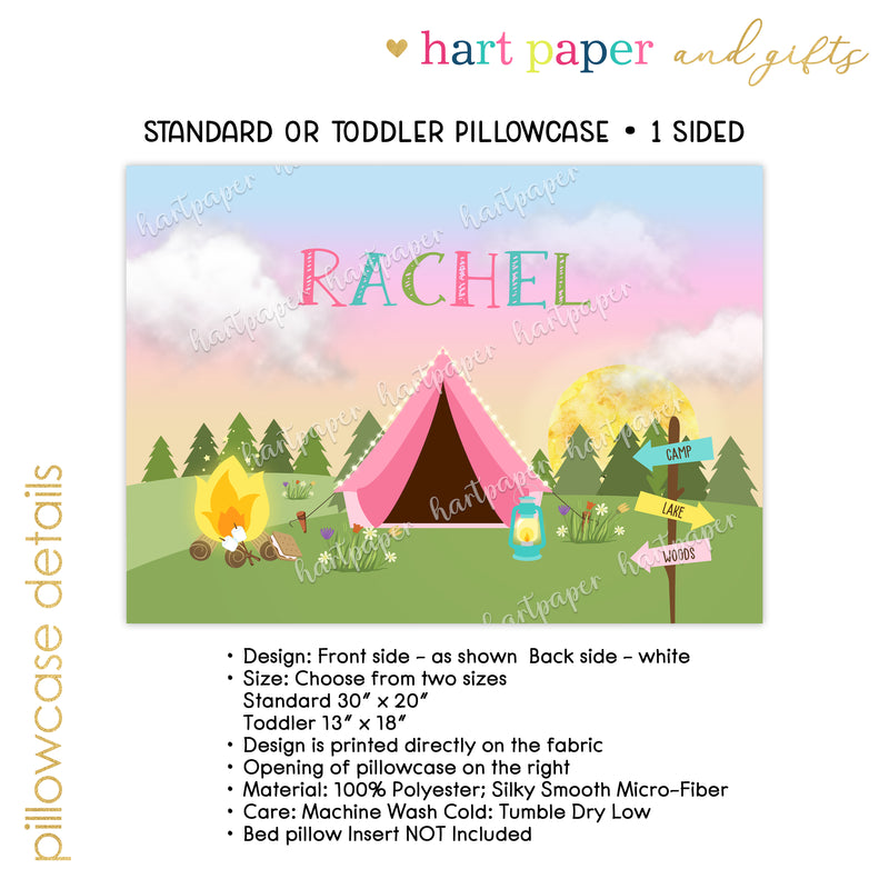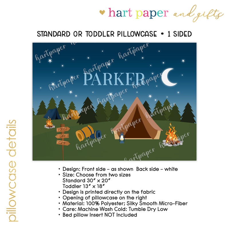 Tent Camp Camping Personalized Custom Pillowcase • Standard or Toddler Size
