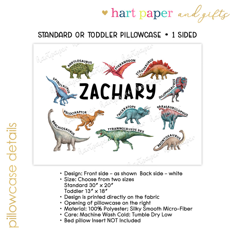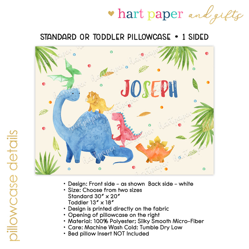 Dinosaur Dino Personalized Custom Pillowcase • Standard or Toddler Size