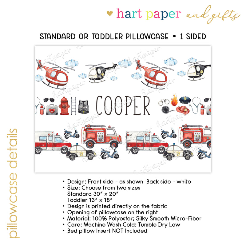 Firetruck Police Personalized Custom Pillowcase • Standard or Toddler Size