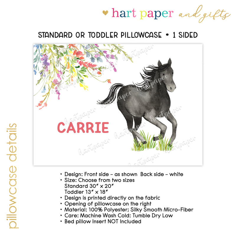 Wildflower Horse Pony Personalized Custom Pillowcase • Standard or Toddler Size