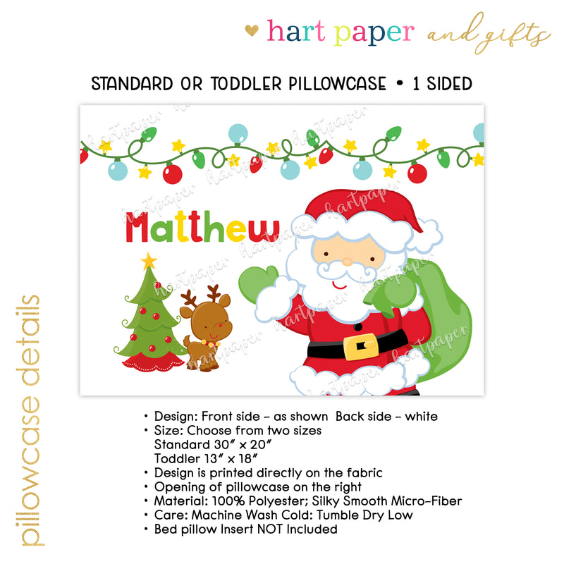 Santa Claus Personalized Custom Pillowcase • Standard or Toddler Size