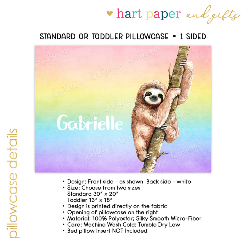 Rainbow Sloth Personalized Custom Pillowcase • Standard or Toddler Size