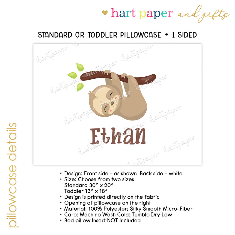 Sloth Personalized Custom Pillowcase • Standard or Toddler Size