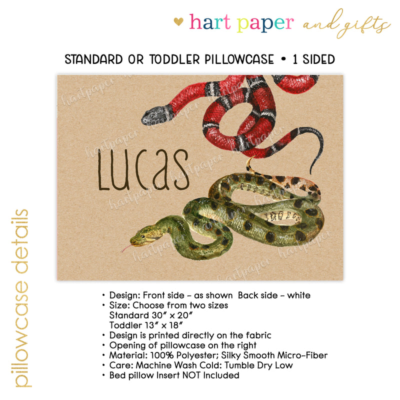 Snakes Personalized Custom Pillowcase • Standard or Toddler Size