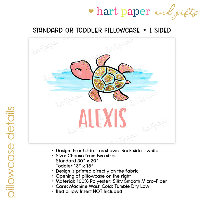 Turtle Personalized Custom Pillowcase • Standard or Toddler Size