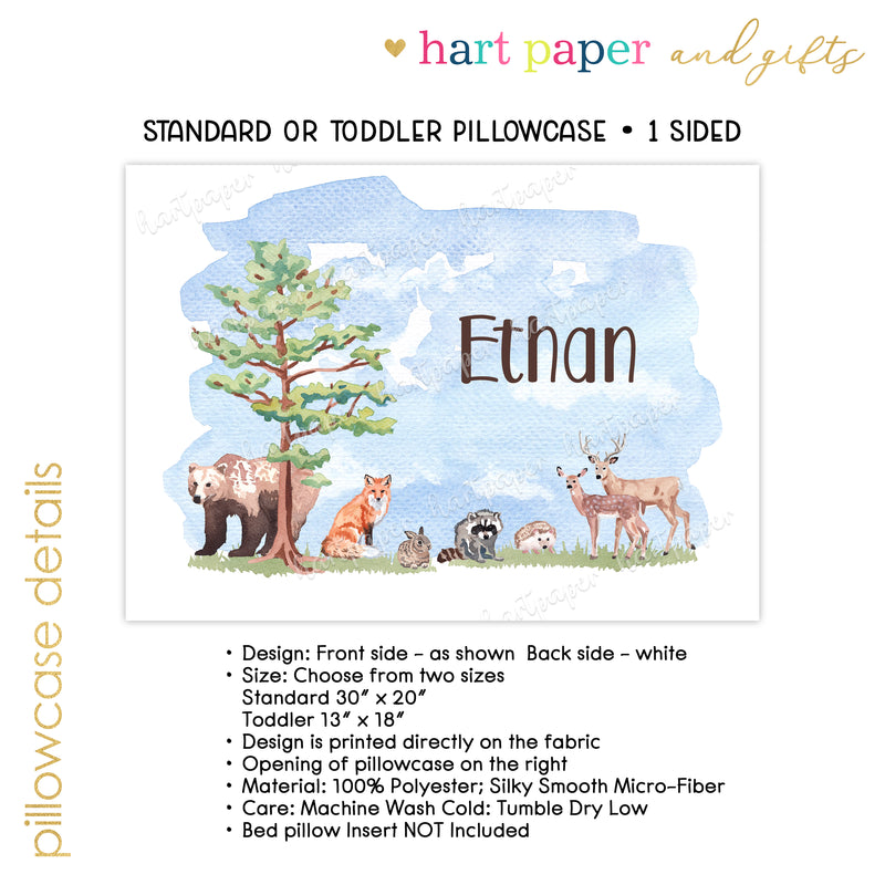 Forest Animals Personalized Custom Pillowcase • Standard or Toddler Size