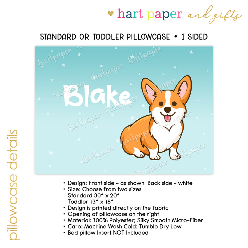 Corgi Dog Personalized Custom Pillowcase • Standard or Toddler Size