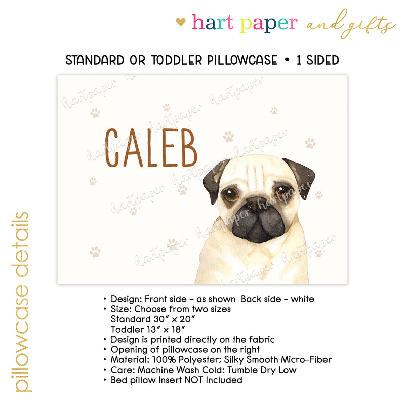 Pug Dog Personalized Custom Pillowcase • Standard or Toddler Size