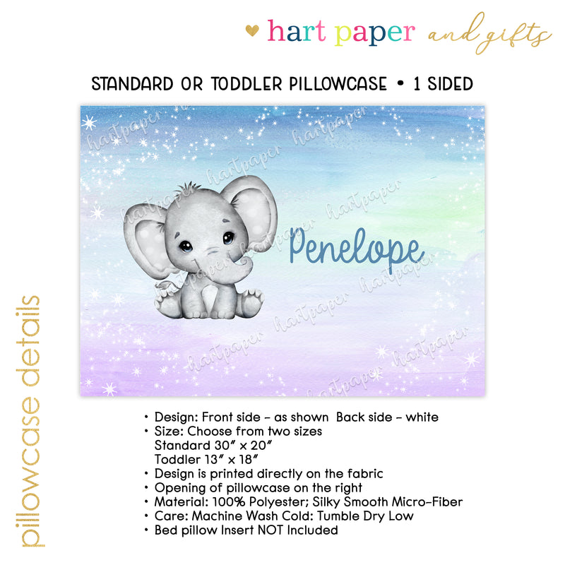 Elephant Personalized Custom Pillowcase • Standard or Toddler Size