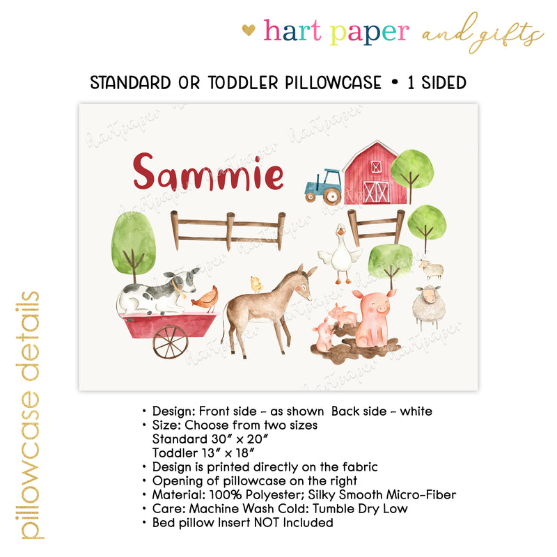 Farm Animals Personalized Custom Pillowcase • Standard or Toddler Size